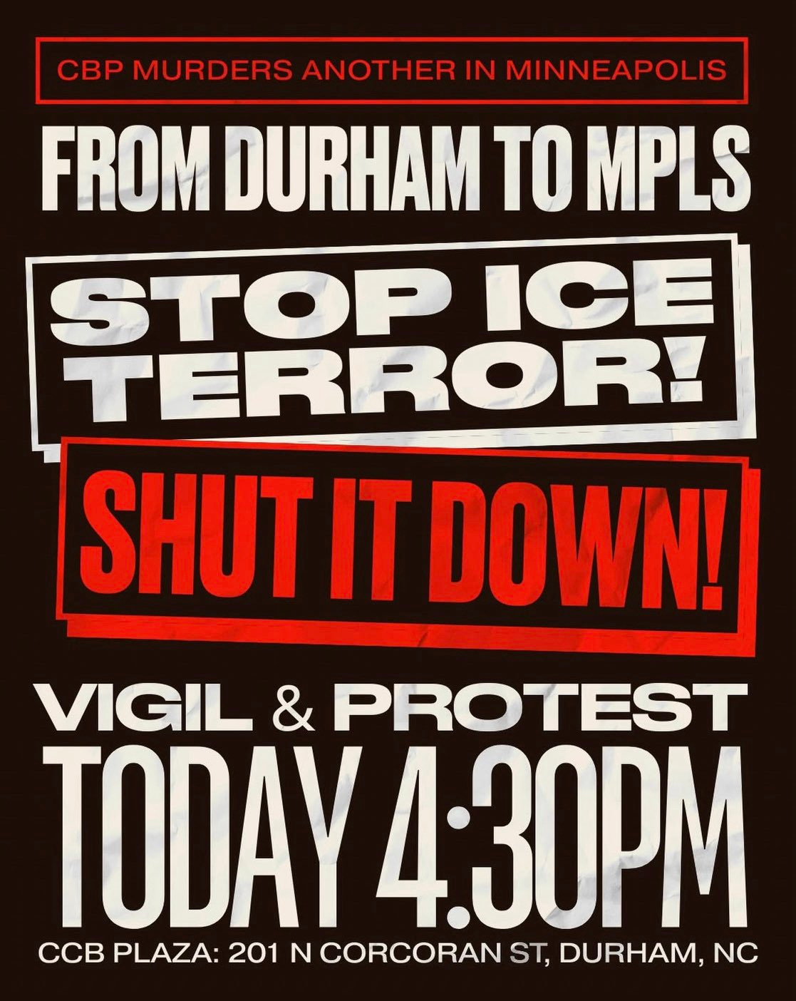 🚨EMERGENCY ACTION TODAY IN DURHAM, NC - IN RESPONSE TO FEDERAL AGENTS KILLING ANOTHER PERSON IN MN🚨